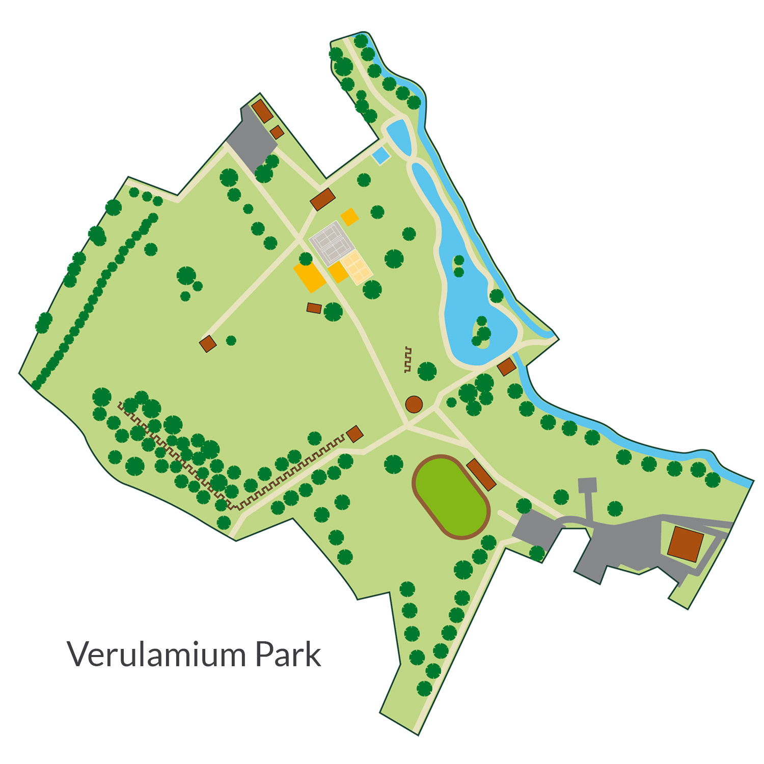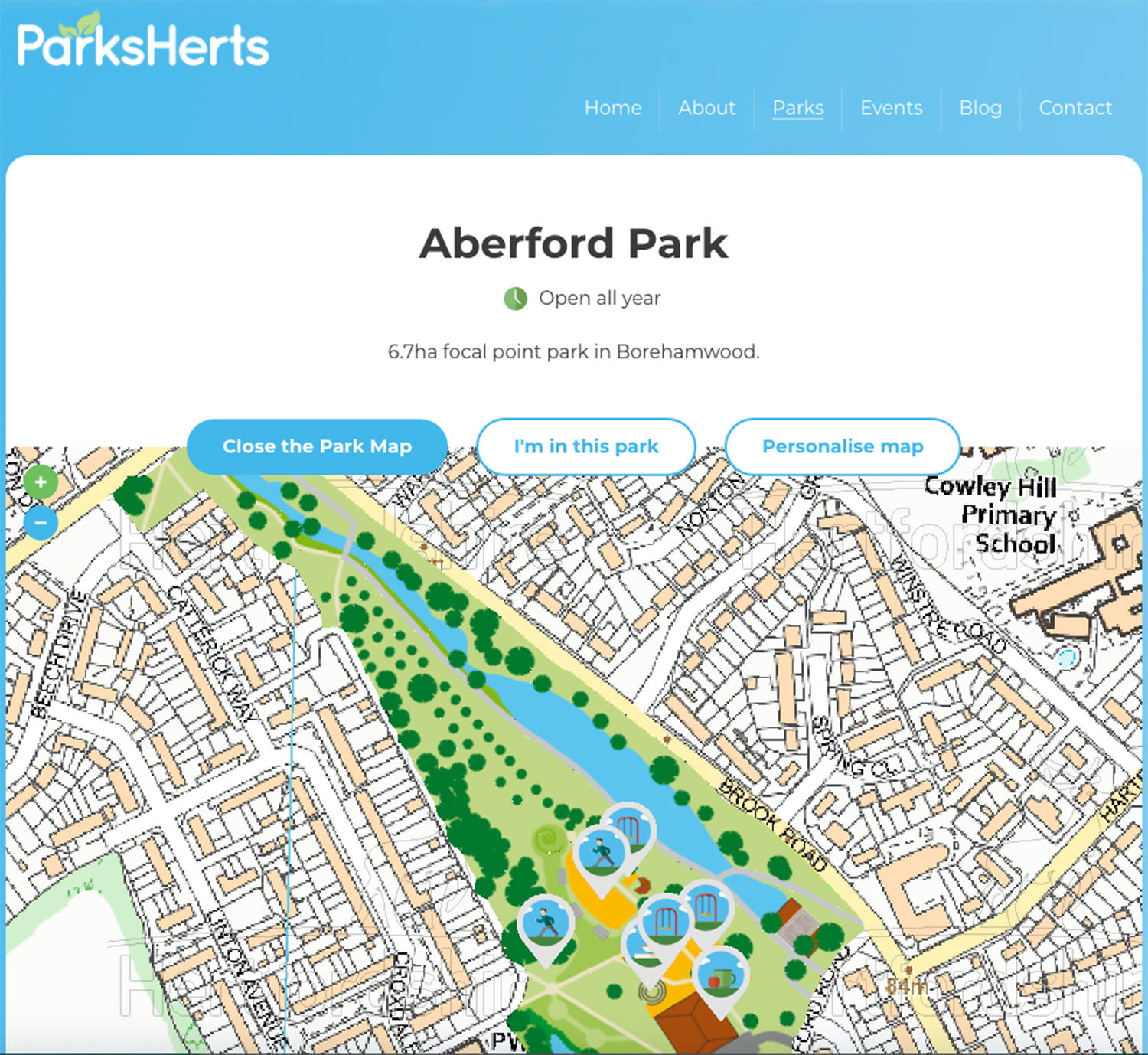 One of my biggest projects was drawing more than 100 simplified maps of all the parks in Hertfordshire, England. The drawings were used in an app called HertsMaps providing information about the area's parks and open spaces.