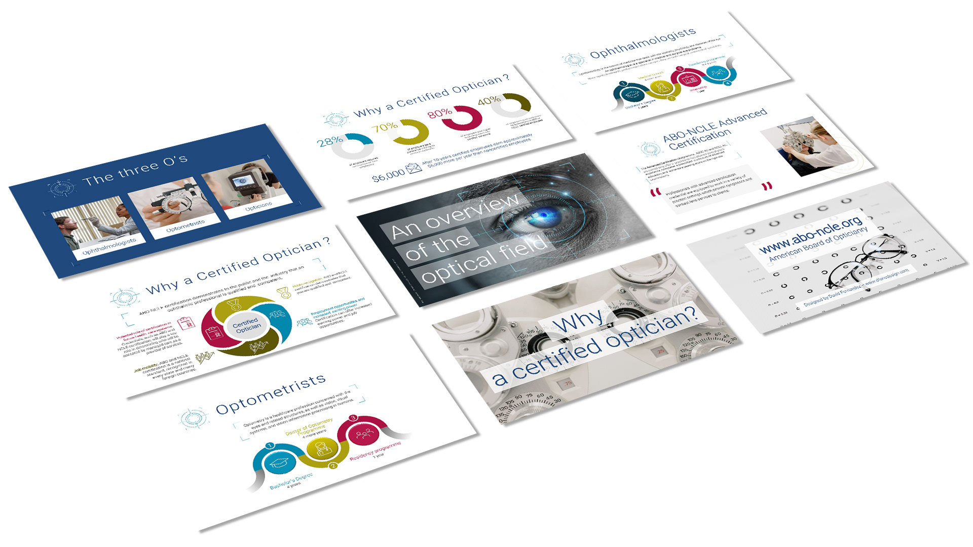 PowerPoint presentation showing an overview of the different careers relating to the optical field.